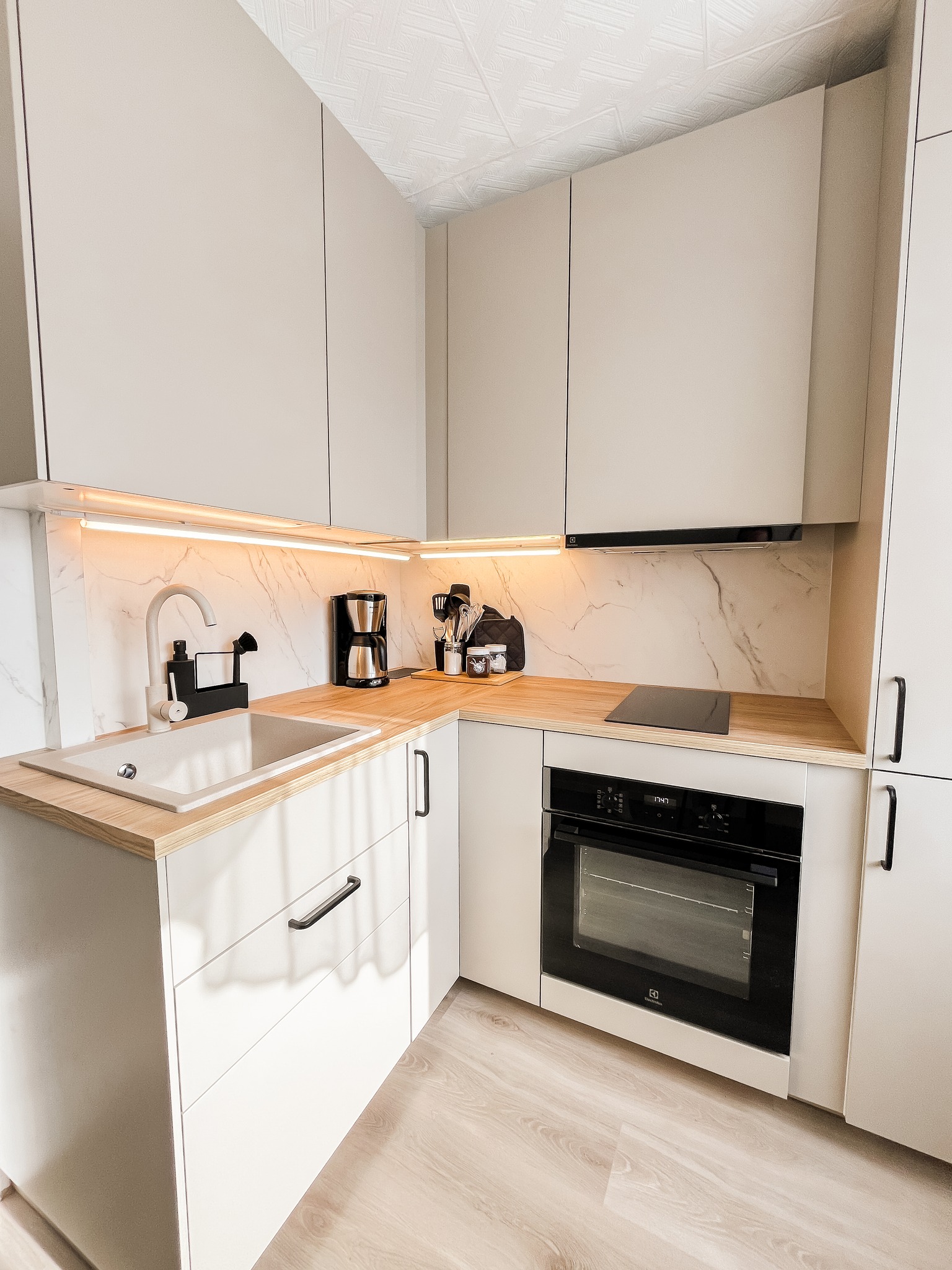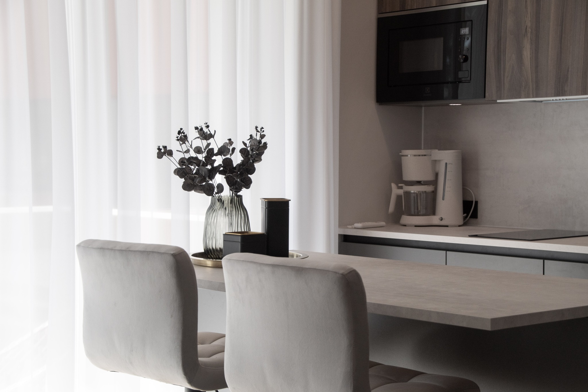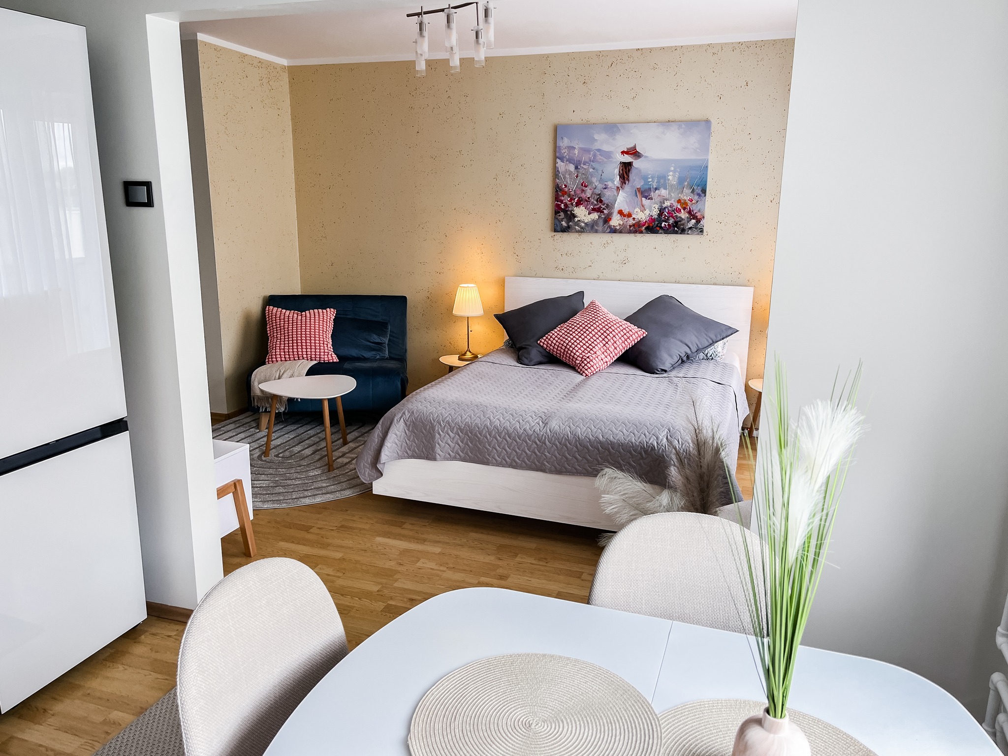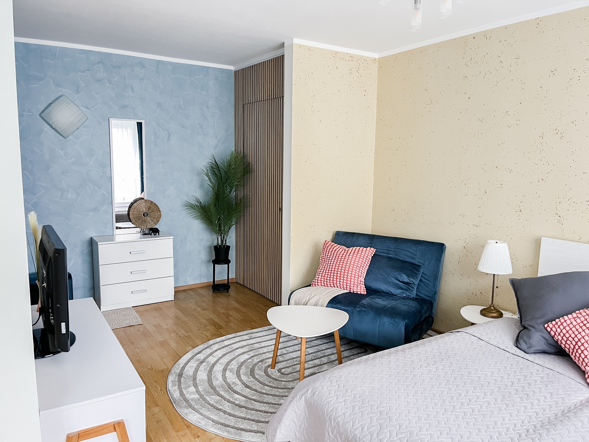 Selle projekti väljakutseks oli muuta varem koduna kasutusel olnud korter kaasaegseks Airbnb korteriks. Viisime läbi strateegilise muudatuse: optimeerisime 3-toalise korteri ühetoaliseks stuudioks, et saavutada majutusturul maksimaalne efektiivsus. Säilitasime olemasoleva köögi, kombineerides selle uue ja värske sisustusega ühtseks tervikuks. Uuendasime kogu ülejäänud mööbli ja lisasime täisvarustuse, muutes seisva kinnisvara toimivaks ja kõrge reitinguga (9.2 punkti) äriprojektiks.