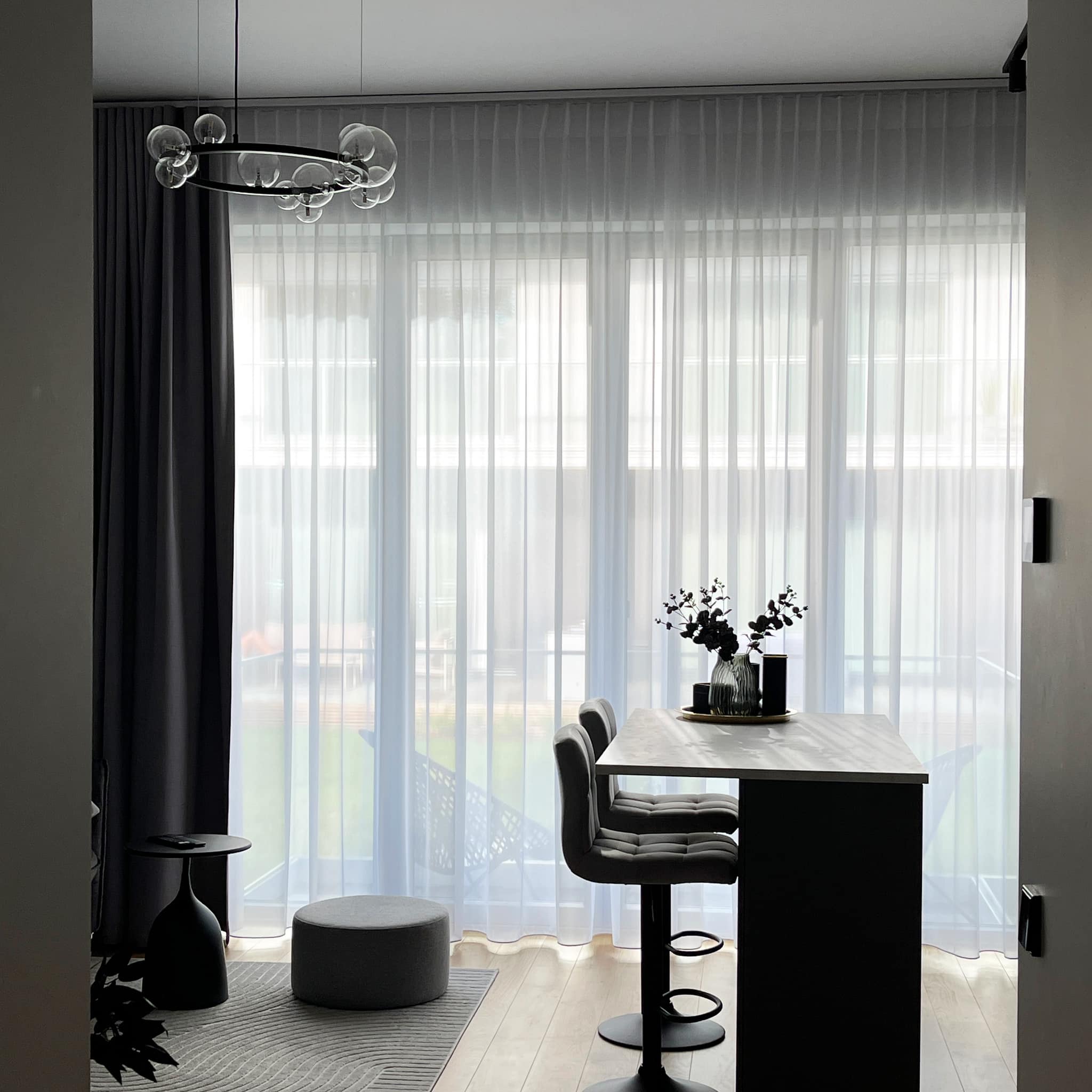 Selle projekti puhul oli meie ülesandeks muuta uusarenduse värskelt valminud korter (kus arendaja poolt olid vaid seinavärv ja parkett) täisvarustuses lühiajaliseks üürikorteriks. Planeerisime ja hankisime kogu sisustuse alates pehmest mööblist kuni köögitarvikuteni, korraldasime logistika ning seadistasime korteri lõplikult külaliste vastuvõtmiseks. Tulemuseks on toimiv ja läbimõeldud majutusüksus, mis on saanud külastajatelt kõrgeid hinnanguid (9.6 punkti) just oma mugavuse ja stiili eest.